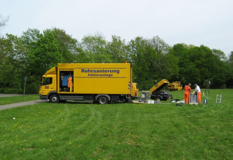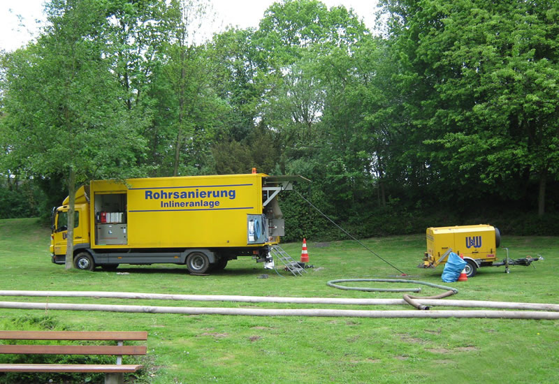 - GFK - Inlinersanierung mit UV-lichthärtendem UP- oder VE-Harz in den Dimensionen DN 150 - 1300 mit DIBt-Zulassung